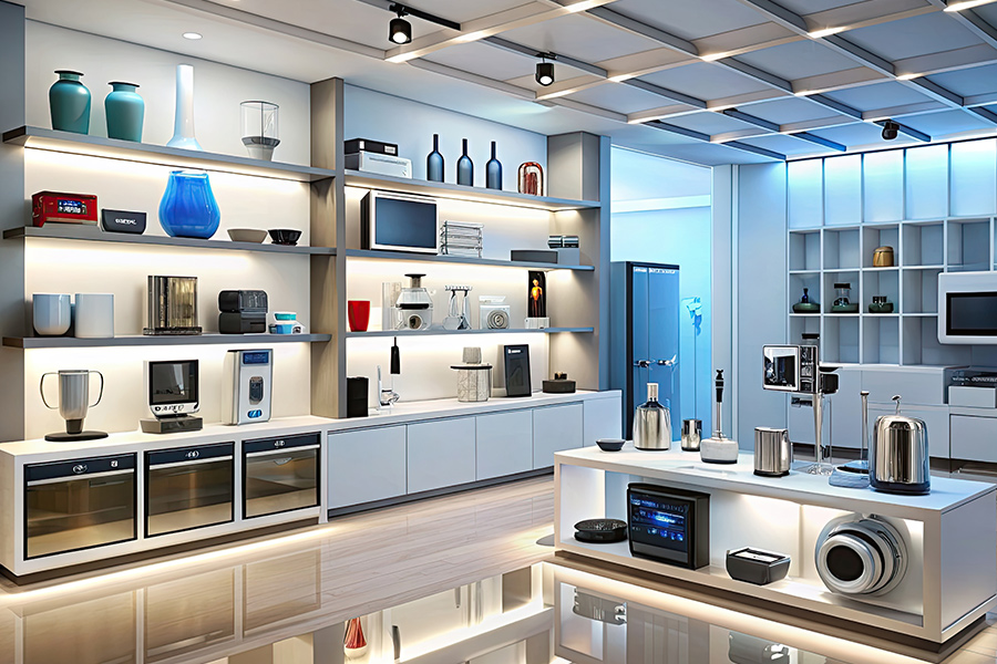 常用於服裝店、超市、書店、藥店等。